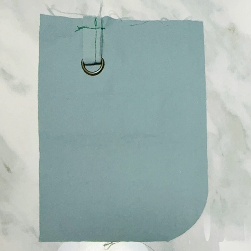 5. ポケットの裏側になる生地に、Dカンを取り付けます。