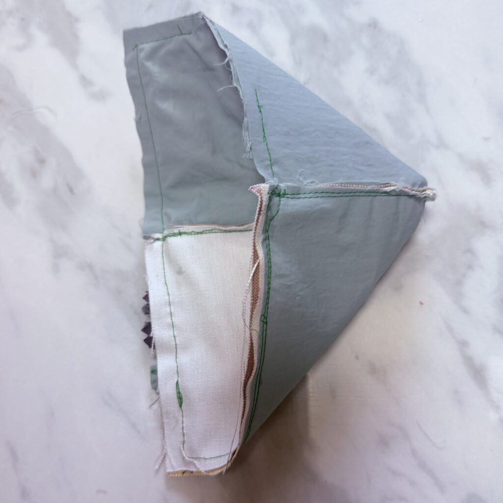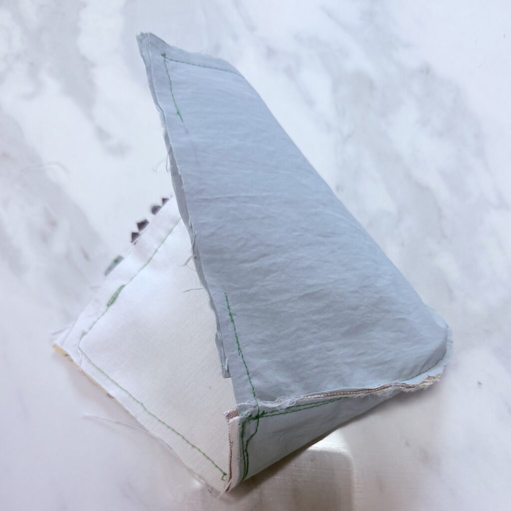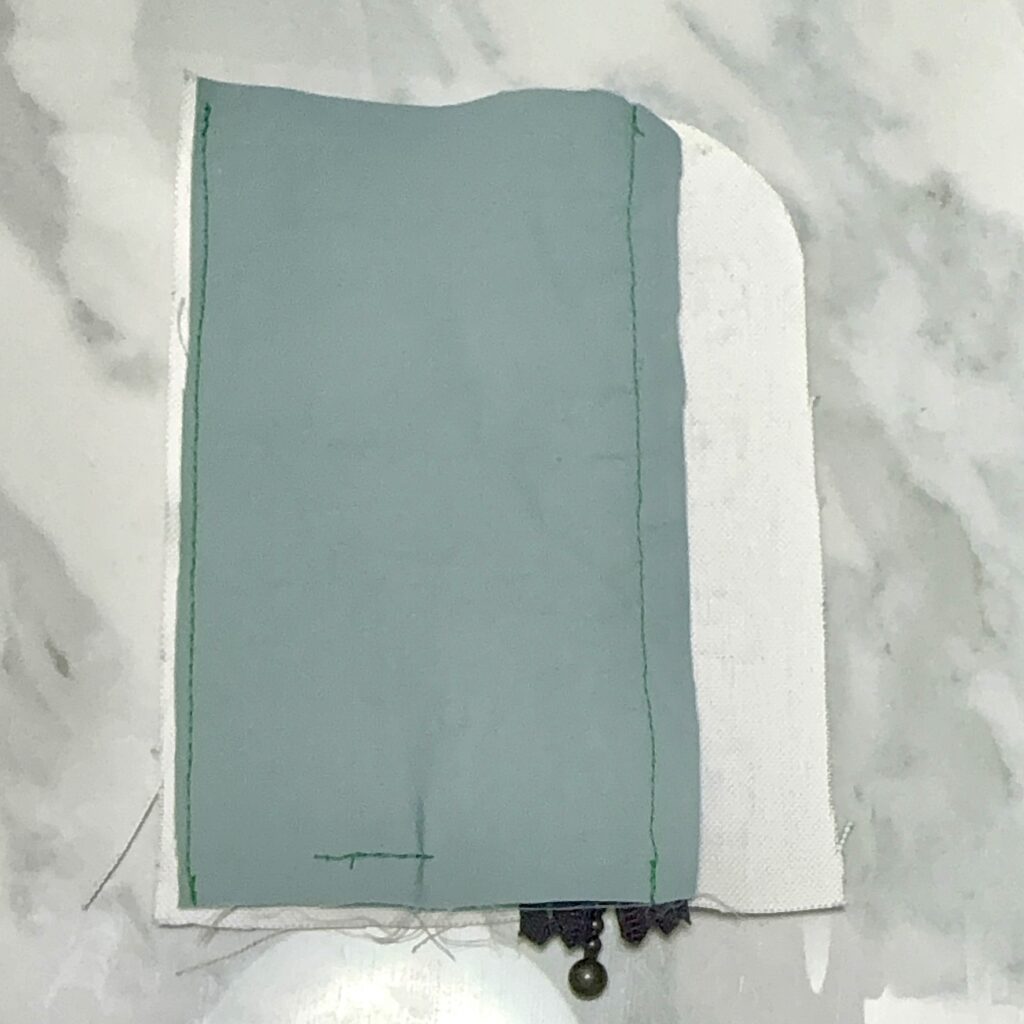 9. 8に裏地を重ねて、同じ場所を重ね縫いします。裏返して整えます。