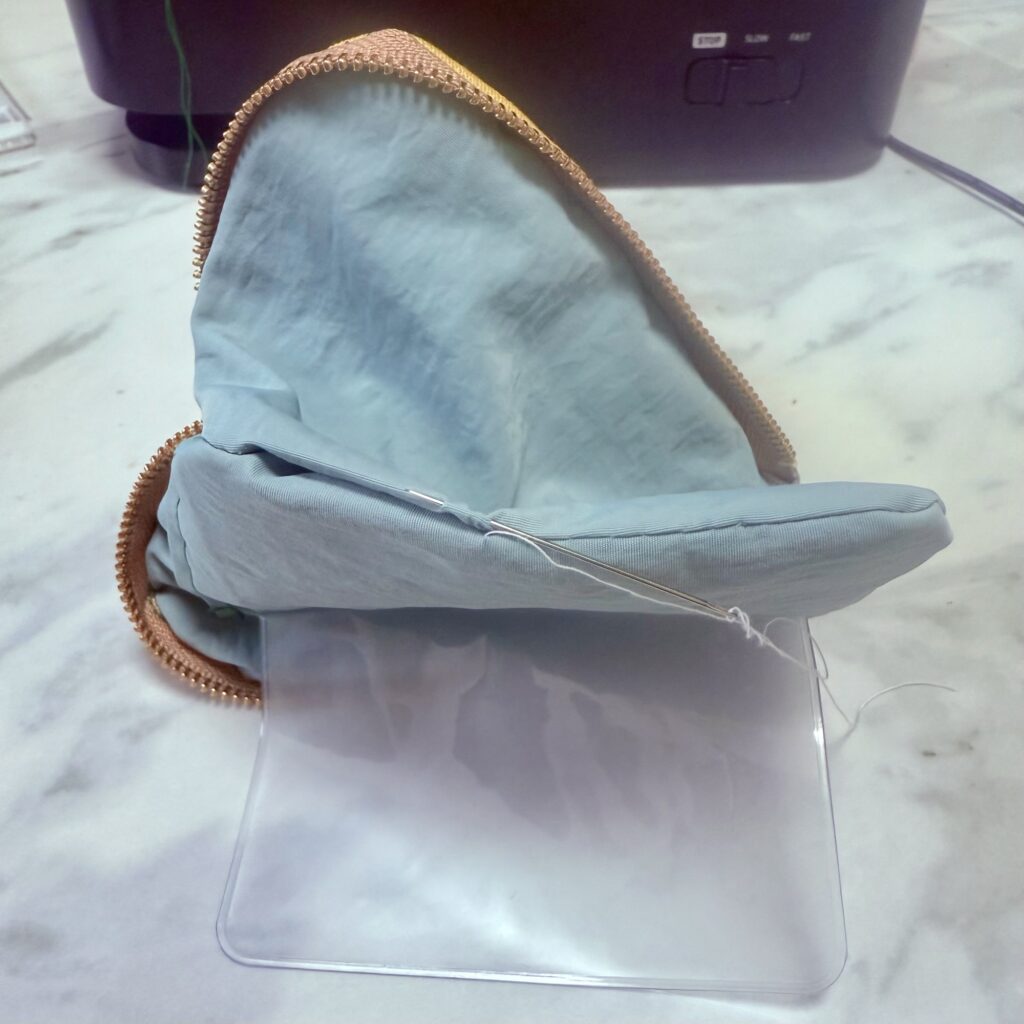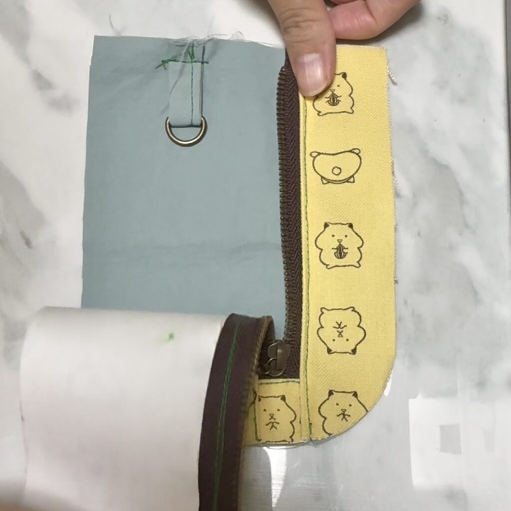11. 裏地はファスナー取り付け前に、内ポケットを縫い合わせます。