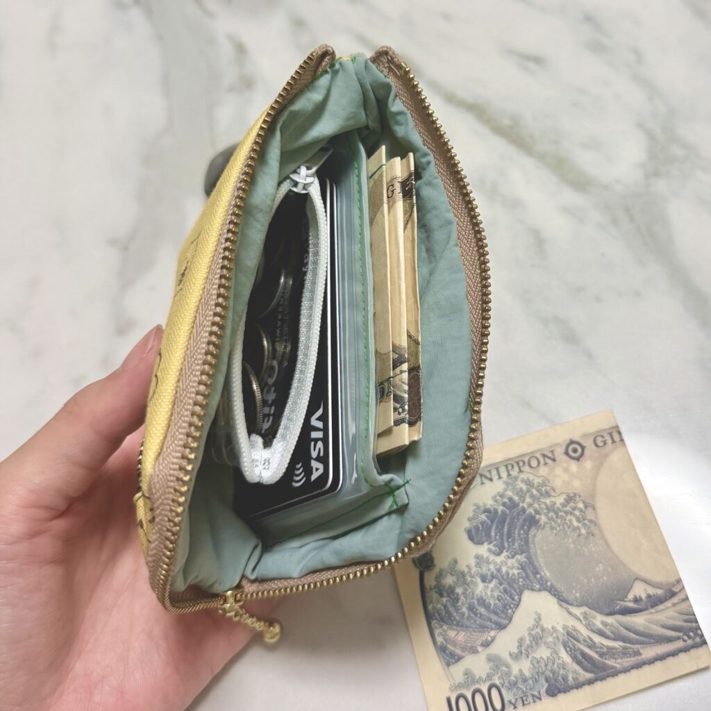 メインポケットはチャックがL字に大きく開くため、小銭なども出し入れしやすいです。